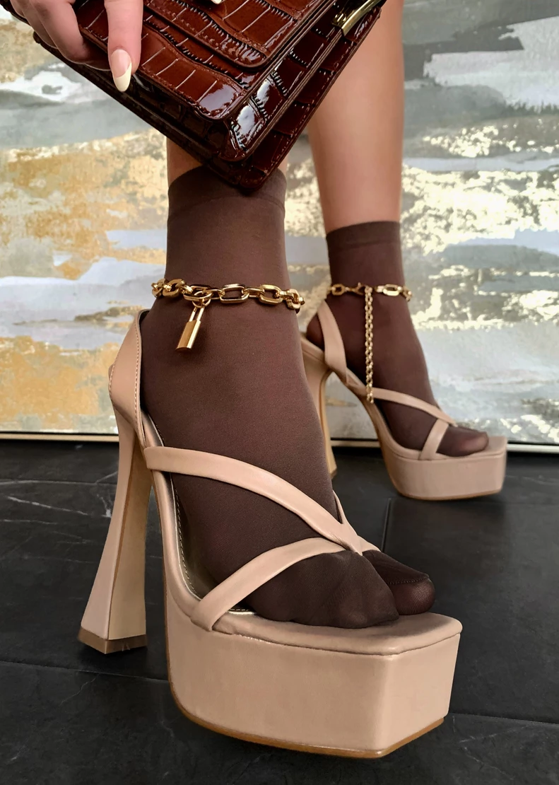 - Flared block heel