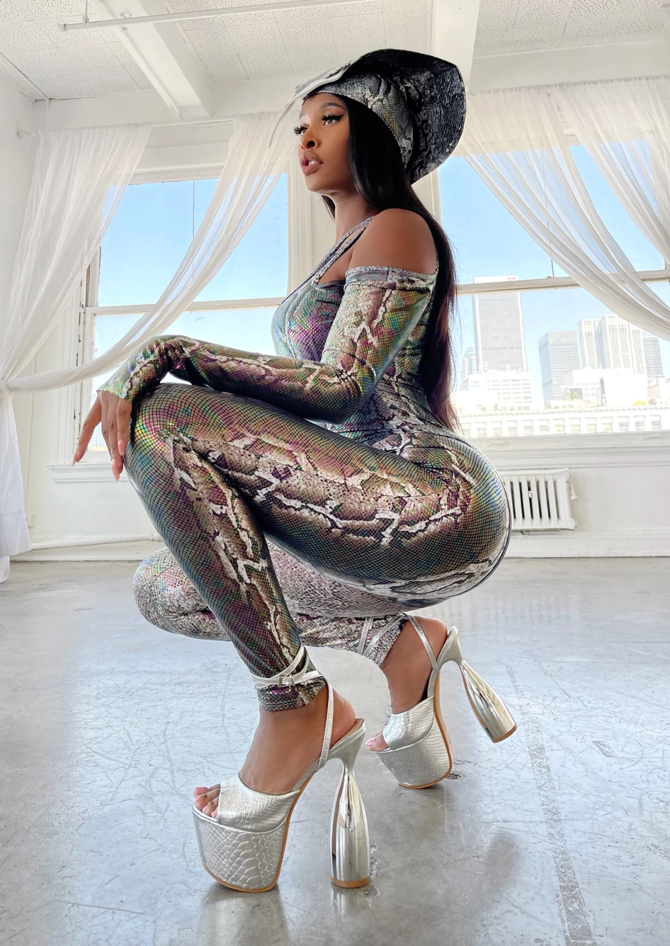 - All-over metallic reptile print