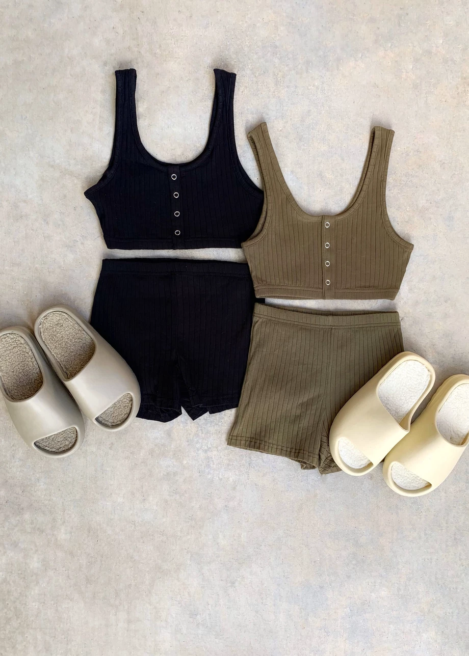 - Crop top & high-waisted short