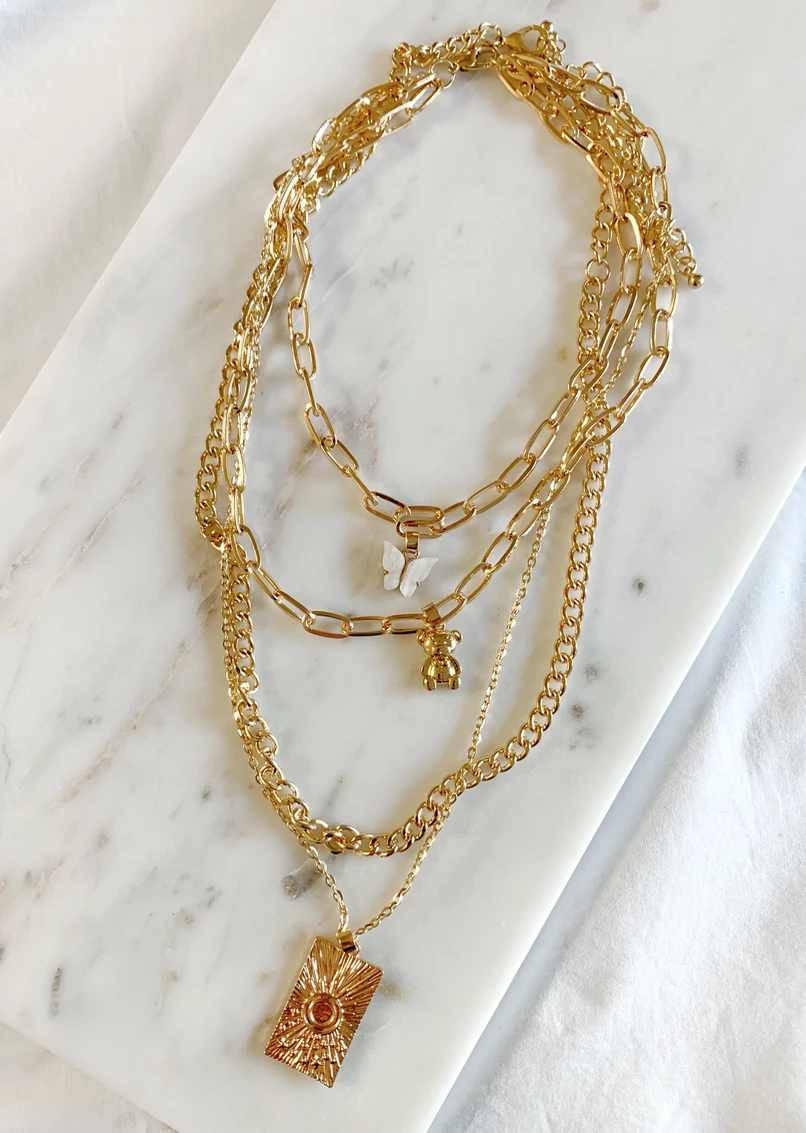 Lorlie TEDDY AND BUTTERFLY 4 PIECE NECKLACE SET